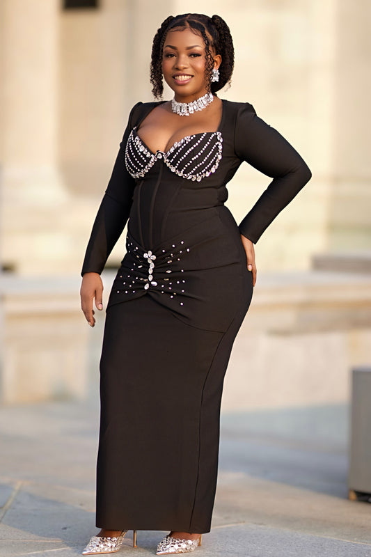 Crystal Embellished Bodycon Evening Gown – Red & Black