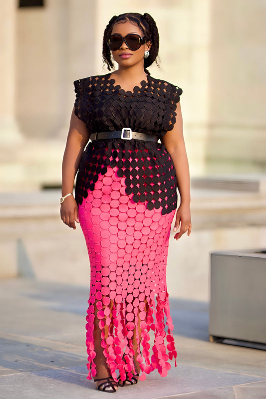 Elegant Two-Tone Maxi Circle Cutout Dress – Black & Pink / Black & beige